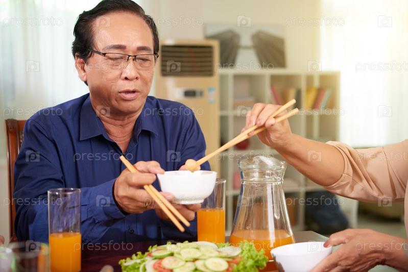 Пожилой мужчина на семейном ужине