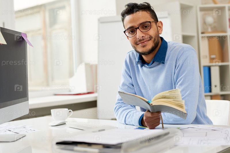 Бородатый менеджер позирует для фотографии