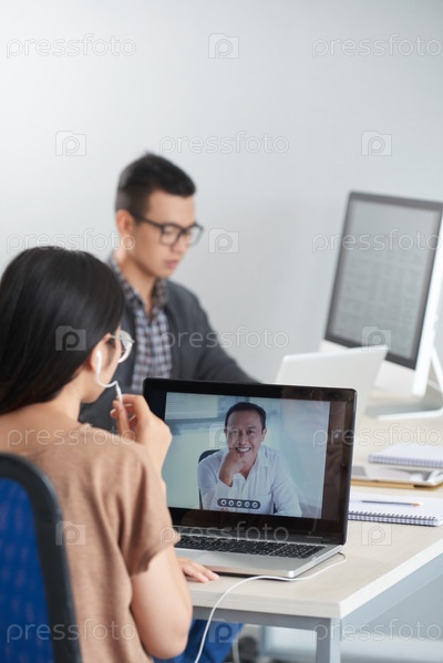 Женщина видеочат с мужчиной на ноутбуке