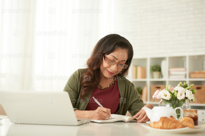 Пожилая женщина заполняет дневник