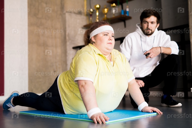 Ожирелая молодая женщина занимается спортом