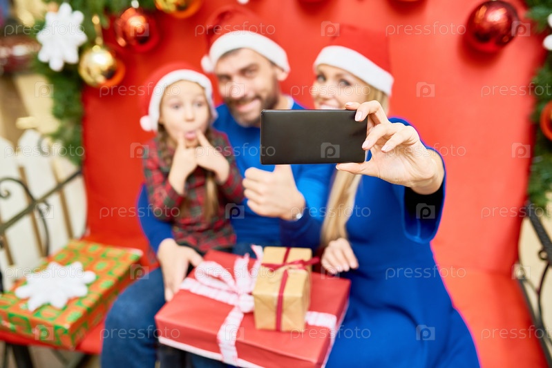 Семья, делающая селфи во время празднования Рождества