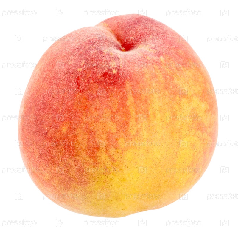Спелый красно-желтый персик крупным планом на белом фоне