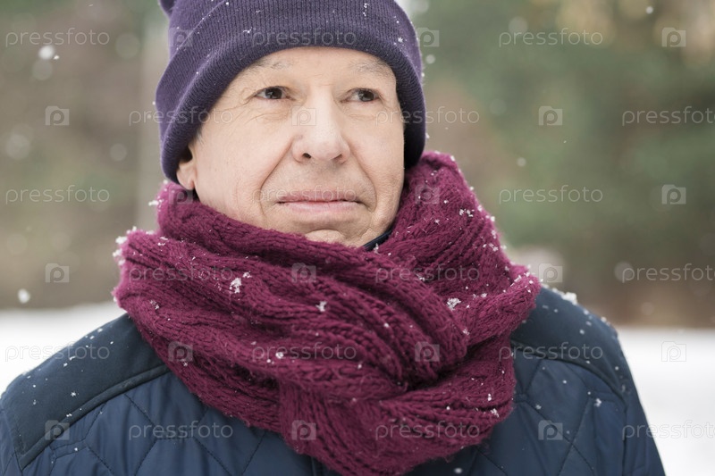 Портрет пожилого человека зимой