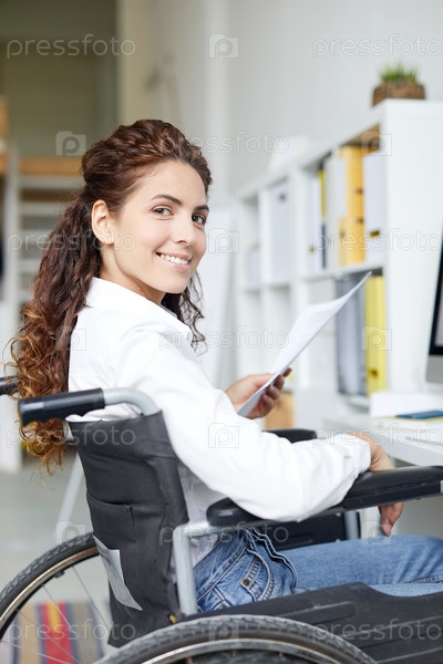 Молодой бухгалтер в инвалидной коляске