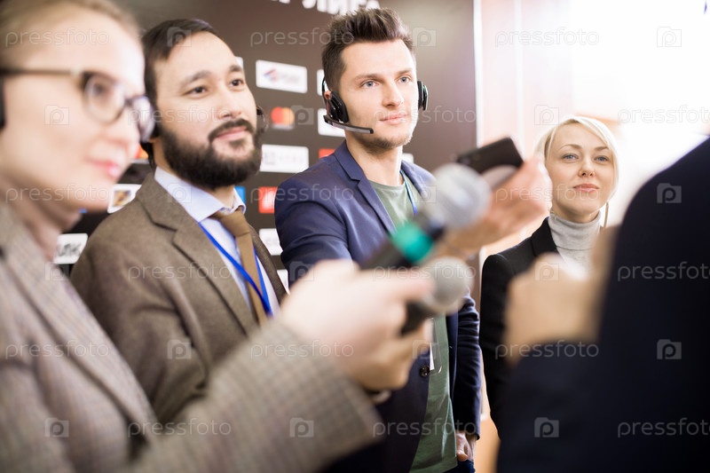 Группа репортеров с микрофонами