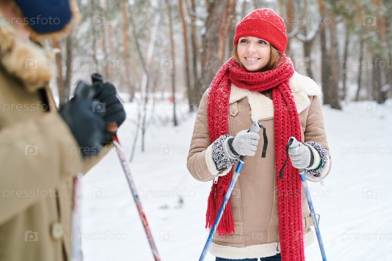 Молодая женщина наслаждается лыжным свиданием