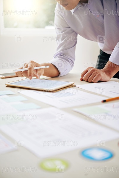 Мужчина, использующий планшет за столом