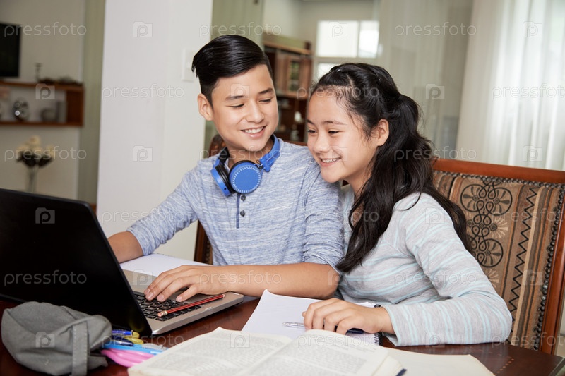 Братья и сестры делают домашнее задание