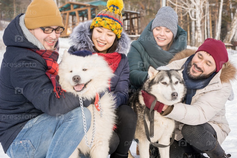Пары, играющие с собаками