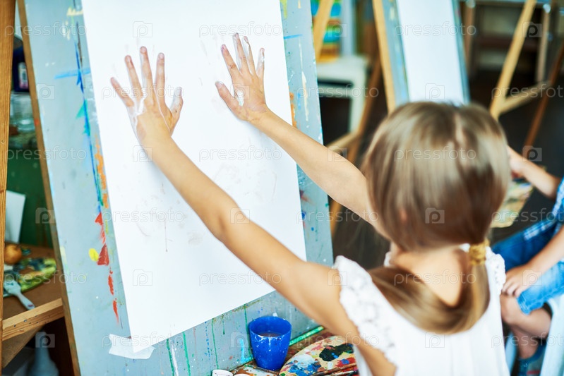 Счастливая девочка, рисующая пальцами