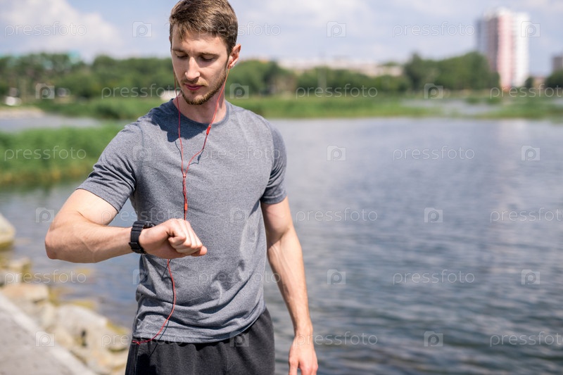 Современный человек проверяет современные смарт-часы