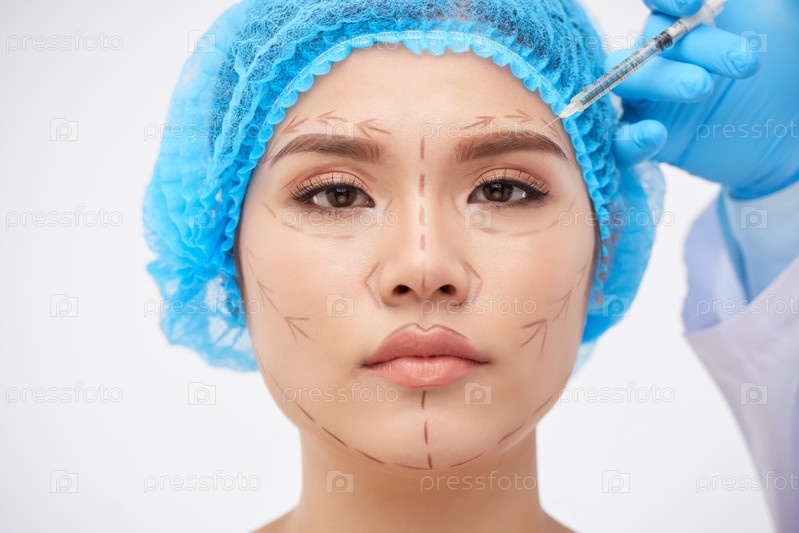 Рука делает инъекцию женщине, готовящейся к хирургу