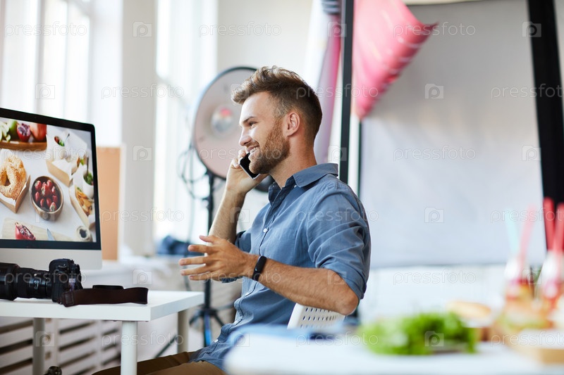 Фотограф, говорящий по телефону