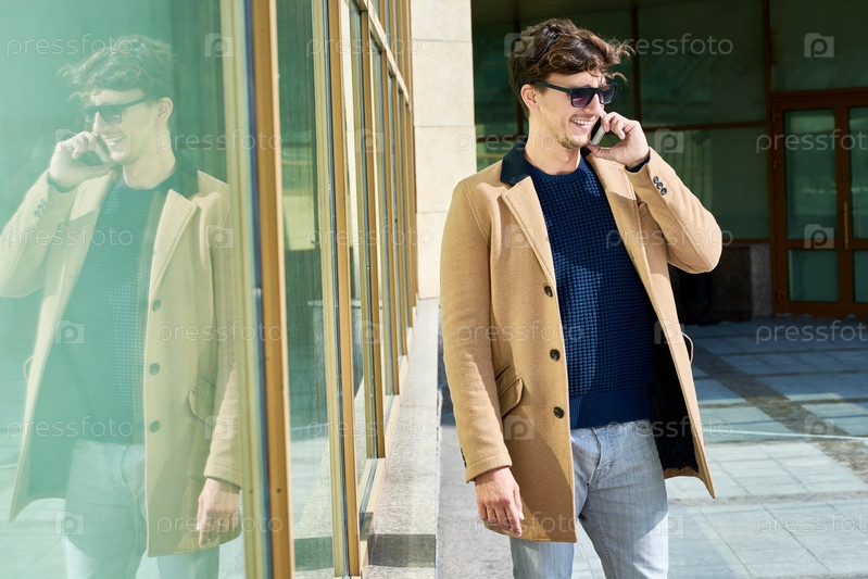 Молодой человек говорит по телефону на открытом воздухе