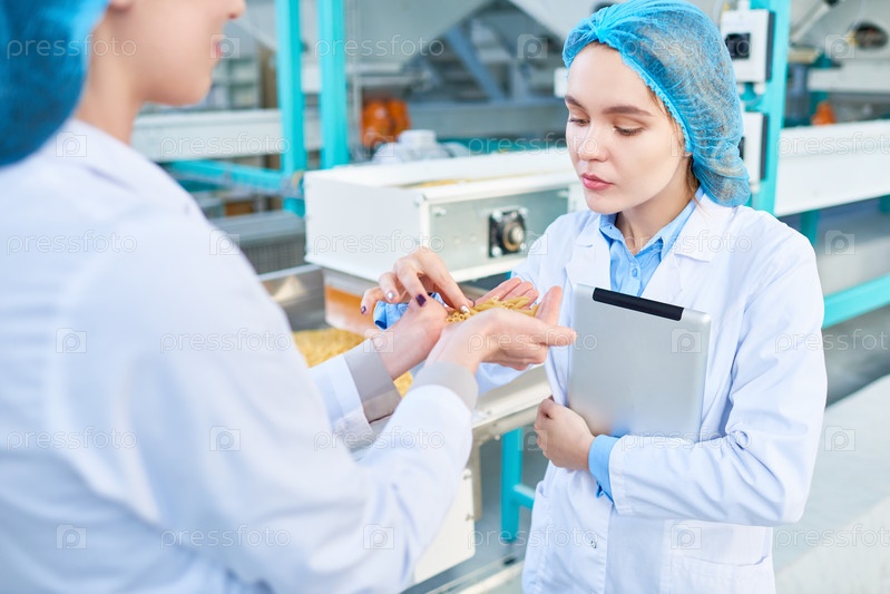 Молодые женщины, работающие на пищевой фабрике