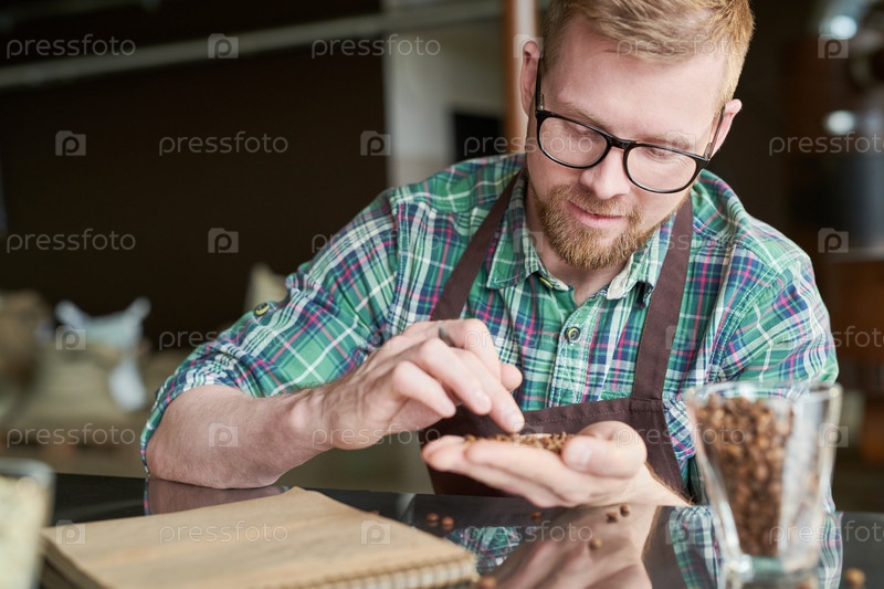 Кофейный тостер, осматривающий кофейные бобы