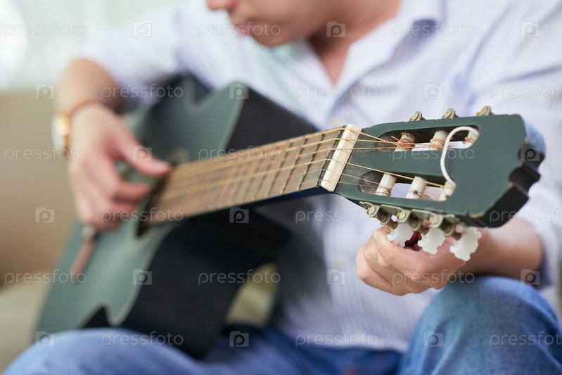 Мужчина играет на гитаре дома