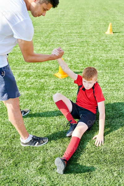 Тренер помогает мальчику