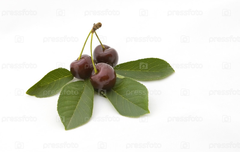 Спелая вишня на белом фоне