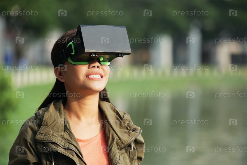 Женщина, носящая устройство виртуальной реальности