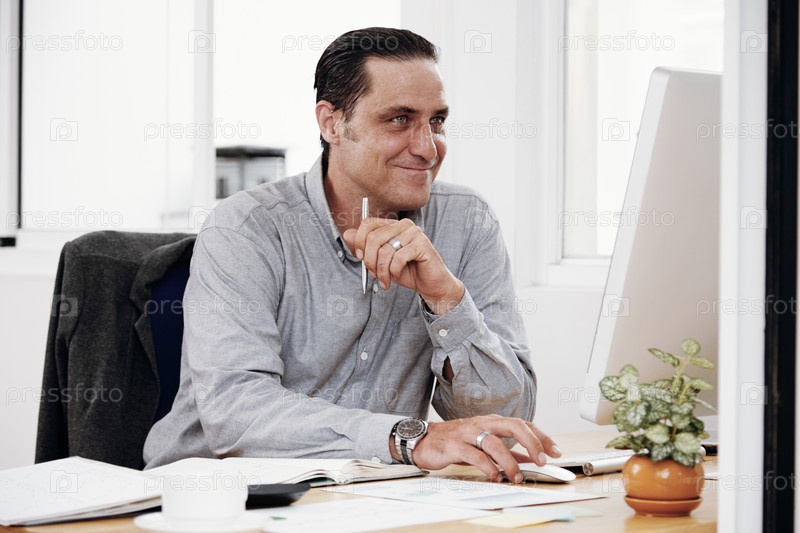 Офисный работник, работающий за компьютером