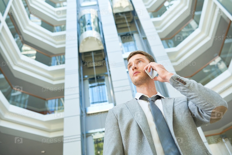 Красивый бизнесмен использует смартфон