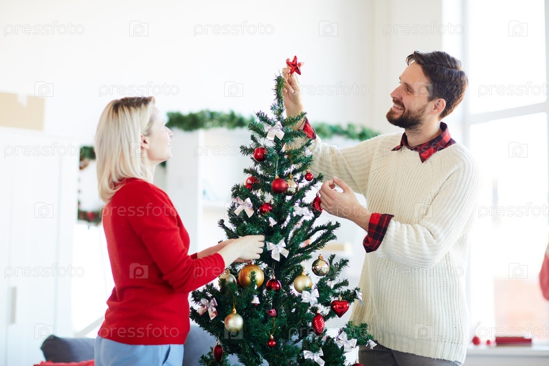 Пара украшает фирт-дерево