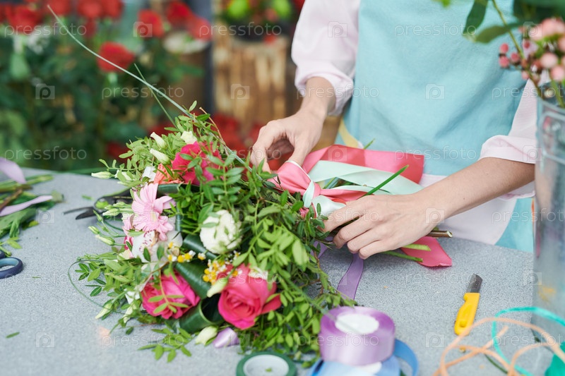 Цветочник, связывающий букет