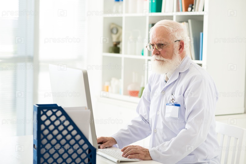 Пожилой врач сосредоточен на работе