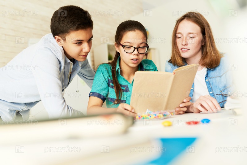 Школьные дети читают книги вместе