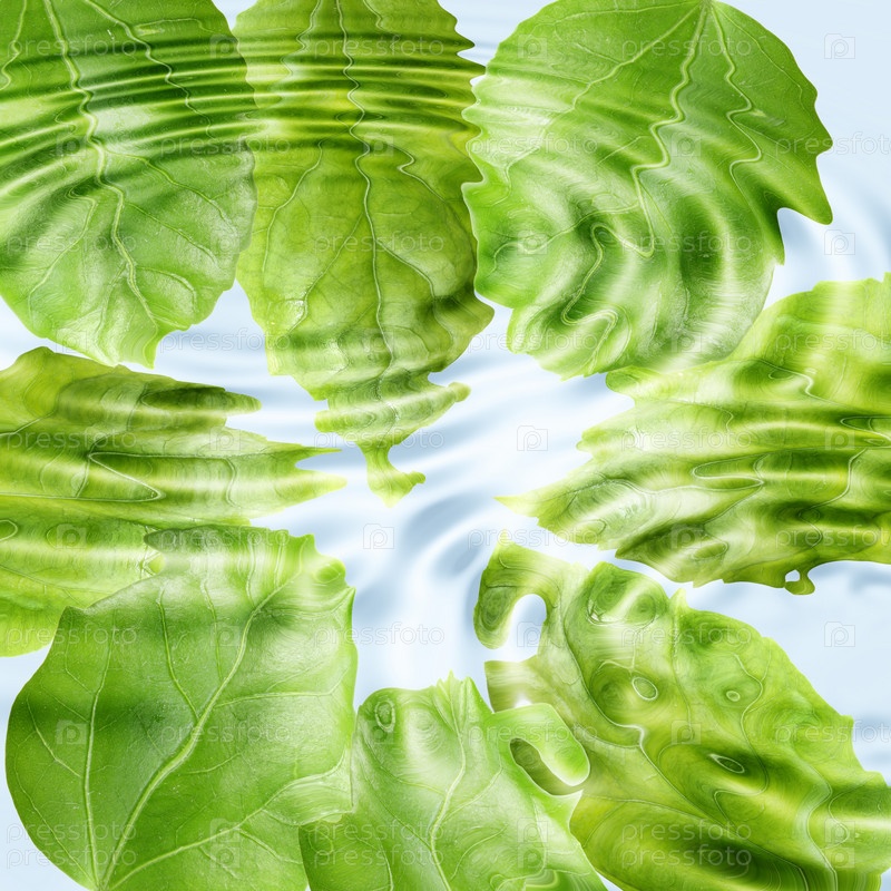 Зеленые листья отражаются в воде