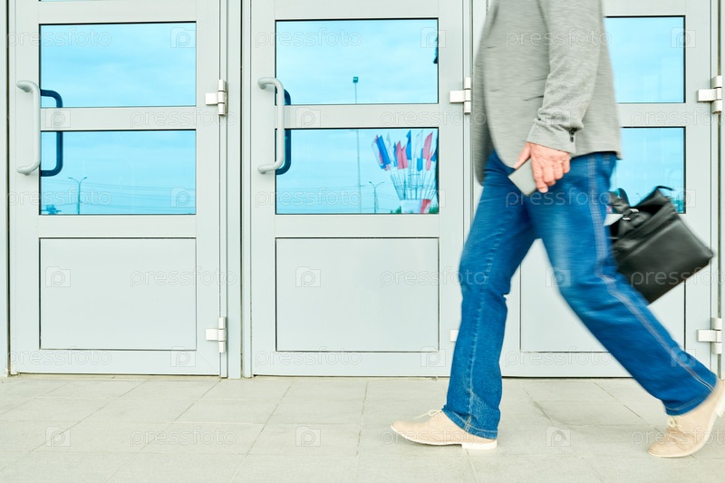 Сельскохозяйственный бизнесмен, гуляющий возле входа в здание