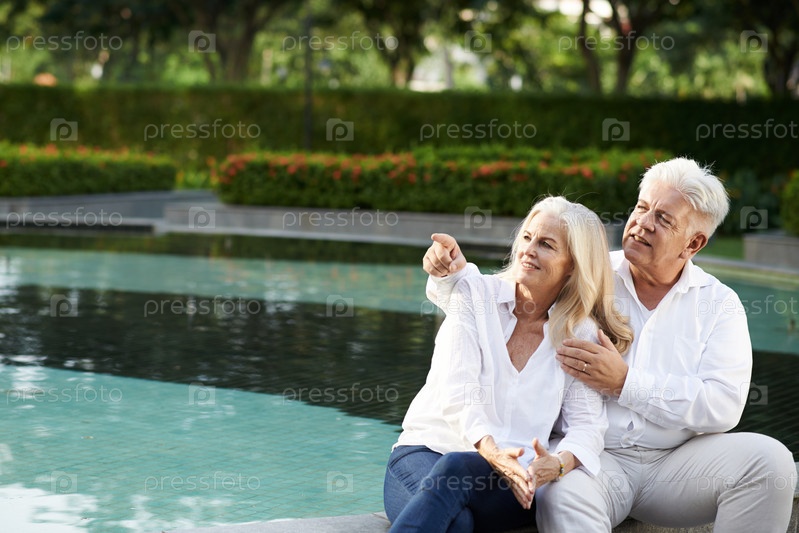 Пожилая пара у бассейна