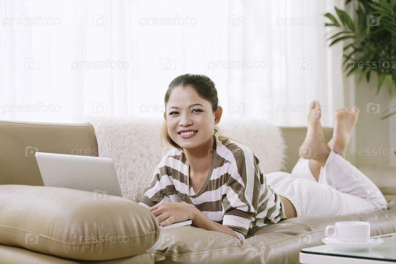 Красивая женщина, отдыхающая на диване