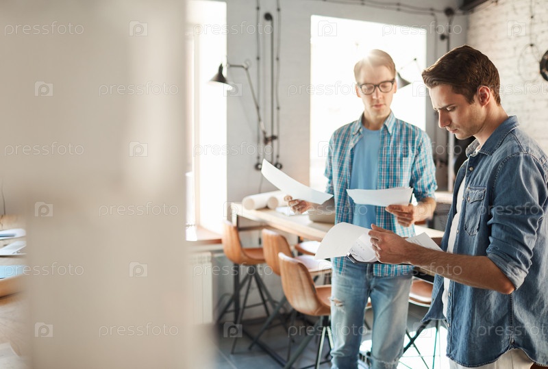 Молодые мужчины, работающие в офисе
