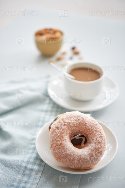 Вкусные пончики и кофе на столе
