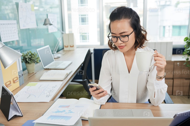 Деловая женщина проверяет телефон