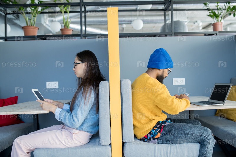 Студенты, использующие современные устройства в кафе