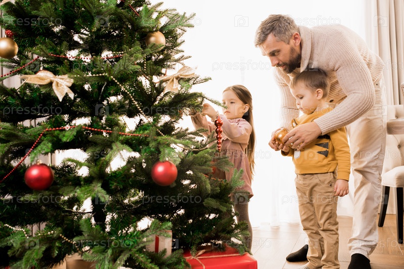 Дети украшают рождественскую елку