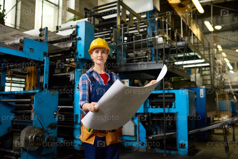 Женщина-фабричный рабочий в современной мастерской