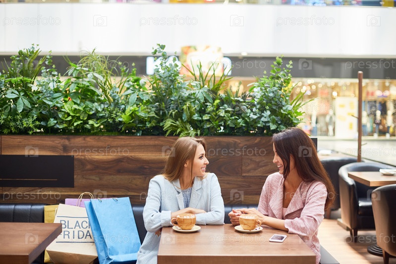 Молодые женщины в торговом центре Cafe Young Women