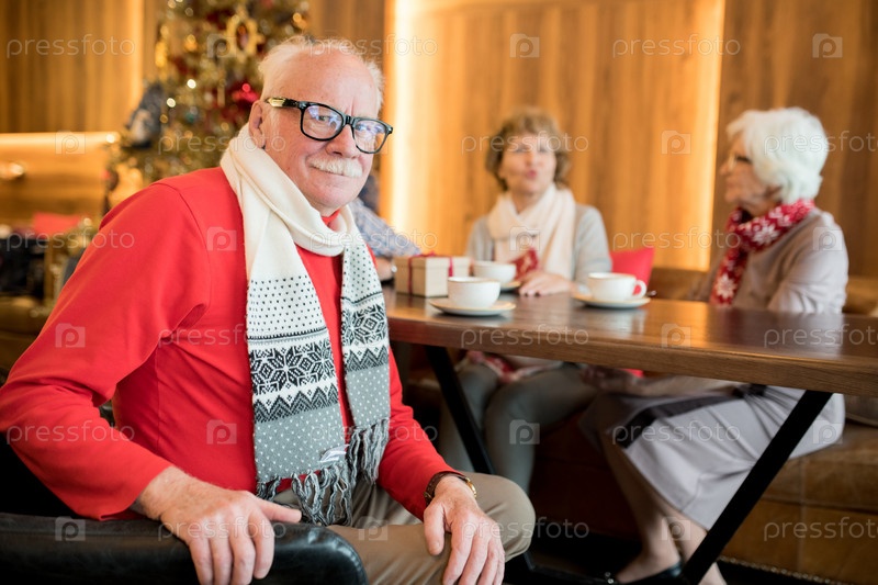 Позитивный красивый старик на новогодней вечеринке