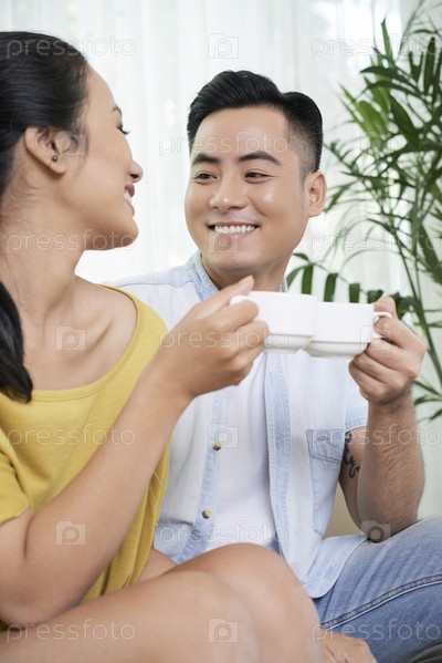 Любящая пара пьет кофе дома
