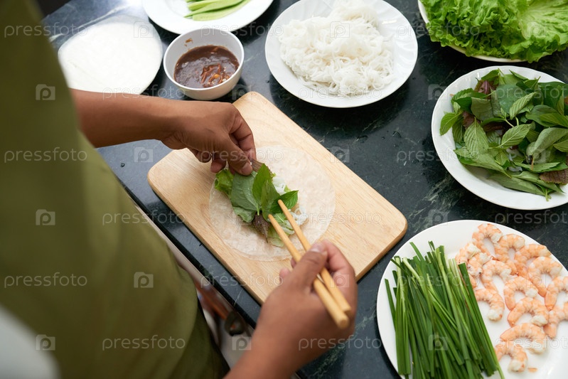 Вьетнамцы делают весенние роллы