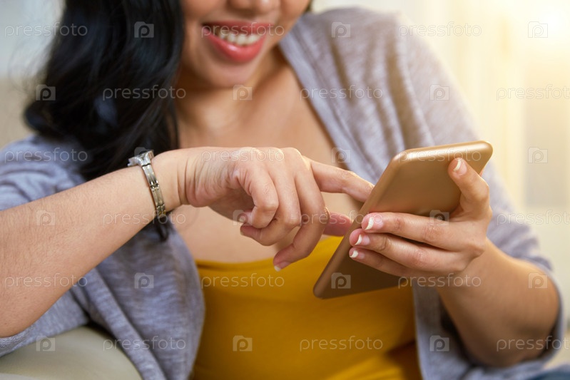 Анонимная филиппинская женщина просматривает смартфон