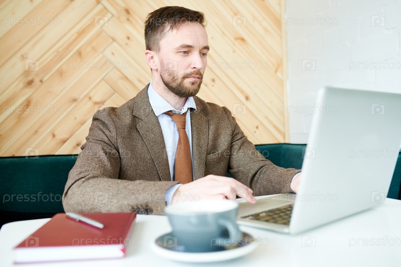 Бизнесмен, работающий в современном кафе