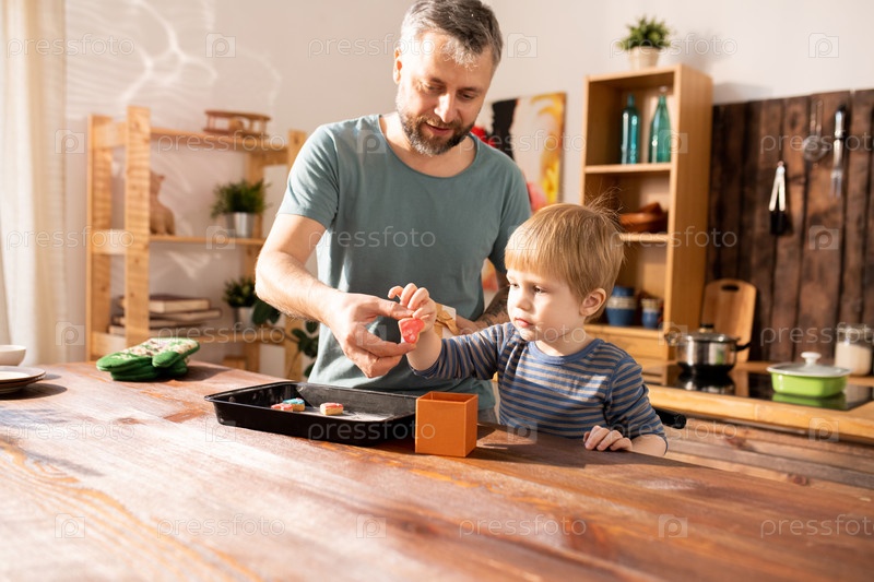 Отец и сын делают подарок для матери