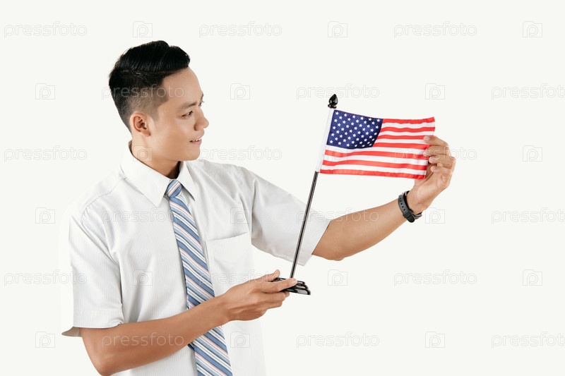 Мужчина с американским флагом азиатский человек