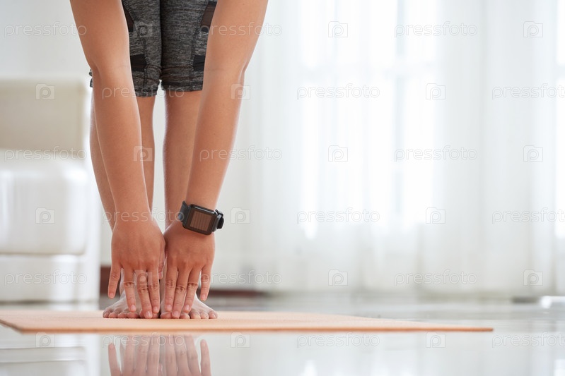 Crop fit woman растягиваясь на матке